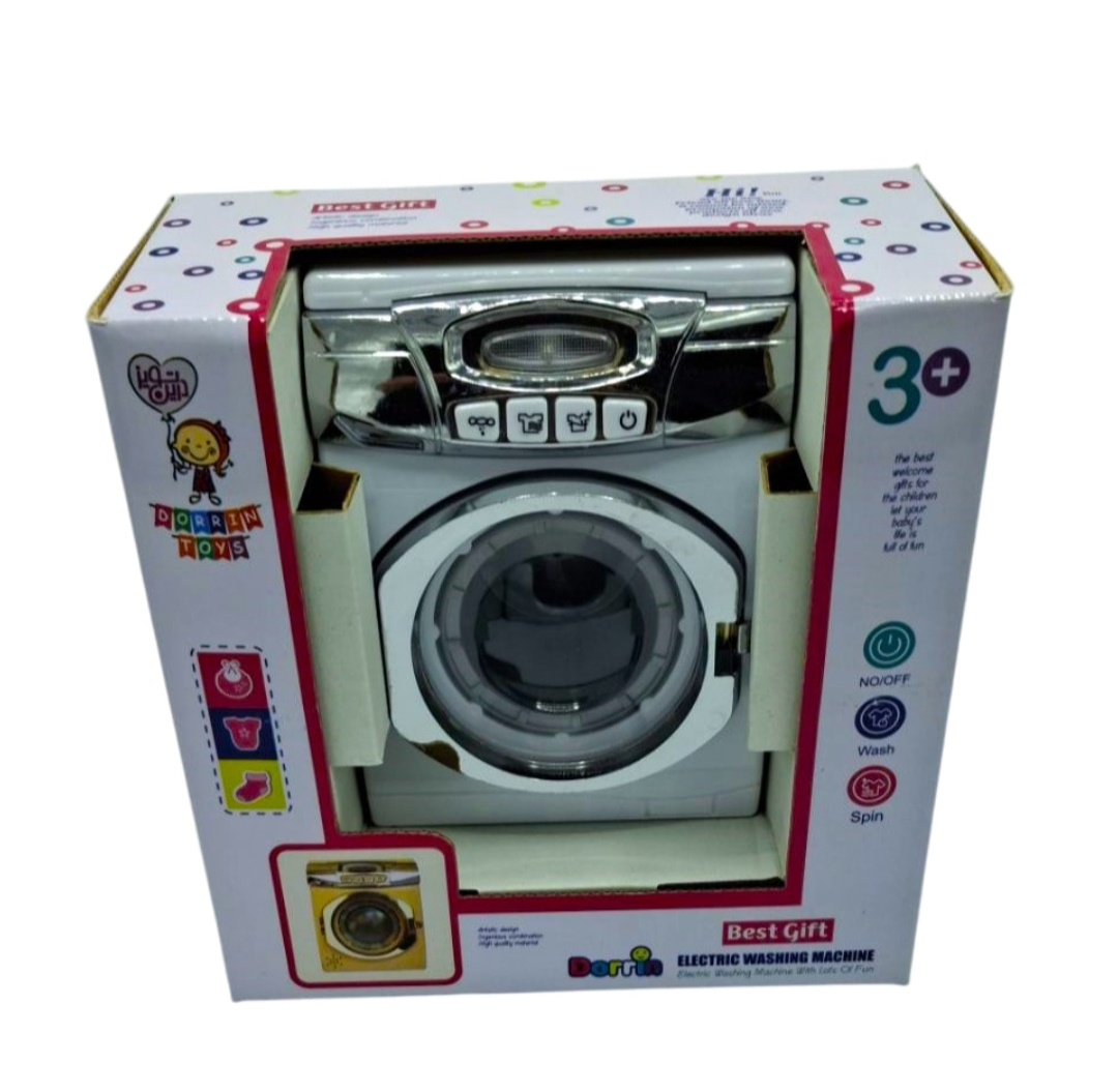 ماشین لباسشویی اسباب بازی درین ، دارای قابلیت روشن شدن ، قابلیت چرخش محفظه ی درونی ، قابلیت باز و بسته شدن درب ، دارای دکمه روشن و خاموش ، دارای چراغ ، کارکرد با سه عدد باتری قلمی